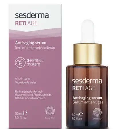 Reti Age Serum de Sesderma es una nueva línea de productos antienvejecimiento basados en la genocosmética y formulados con retinol que incorpora activos que actúan sinérgicamente para aumentar su eficacia y tolerancia.