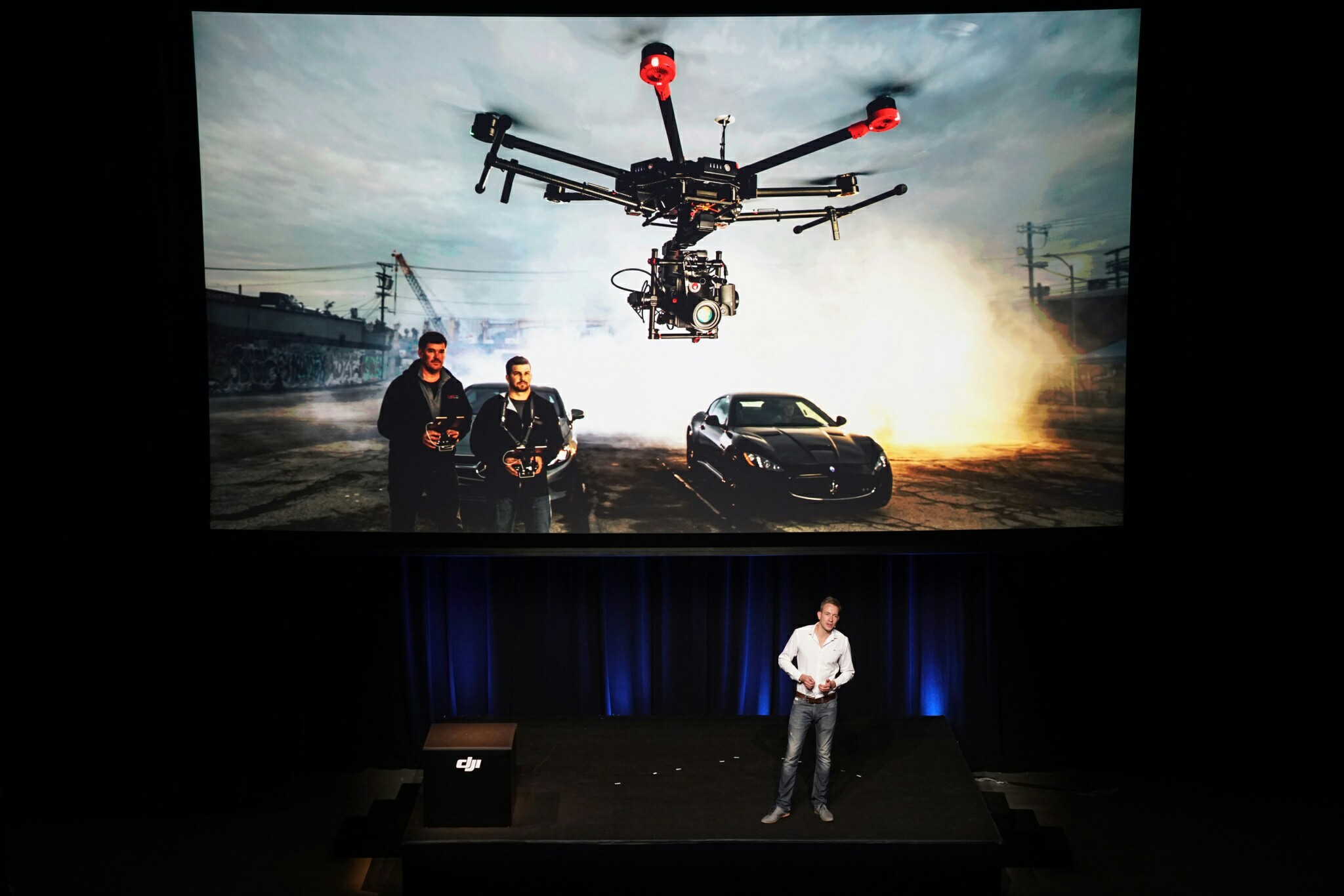 Después de compartir sus experiencias y algunos consejos para los asistentes, Manuel reveló la nueva Zenmuse X7 y el cómo ha realizado experimentos visuales con esta cámara y drones como el Inspire 2 a pocos días de su lanzamiento y en varios sitios de nuestro país. Posteriormente, invitó a la audiencia a que saliera para una demostración en vivo al aire libre, en donde adjuntó la X7 a un Inspire 2 para filmar en perspectiva aérea una escena de acción coreografiada con peleas de espadas, misma que contó con la participación de esgrimistas profesionales.