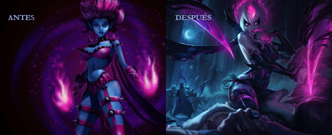 Esta actualización nos presenta a una Evelynn más letal y más peligrosa, gracias a su nuevo diseño, narrativa y jugabilidad. Evelynn sigue siendo una asesina, pero ahora también es un demonio. Es una súcubo. Quiere hacerte muy, pero muy feliz… antes de despedazarte. Para ver todas las mejoras de esta campeona, haz click aquí.