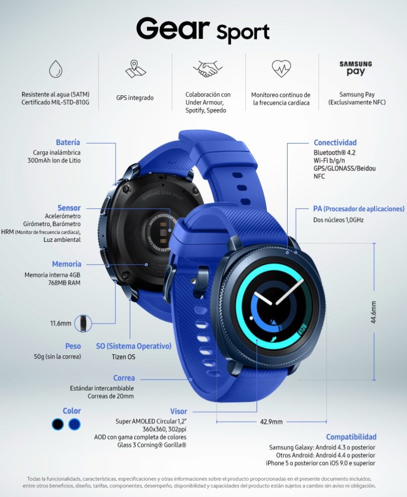 Samsung también esta interesada en los deportes y ha lanzado la línea de Wearables de Samsung, Gear Sport y Gear Icon X, los cuales cuentan con un diseño ergonómico y práctico, conservando un estilo elegante.