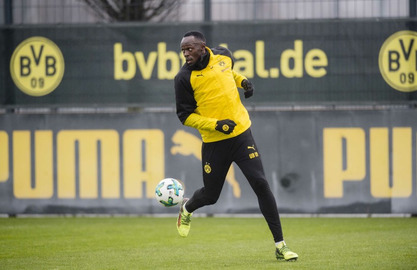Después de tener un carrera olimpica donde rompió los récords mundiales en el atletismo, Usain se niega a bajar el ritmo. Un día después de liderar a su equipo en el «Partido de la Amistad» de Hublot en Basilea, Suiza, se fue directamente a Dortmund, Alemania, para su experiencia en el entrenamiento a nivel profesional.