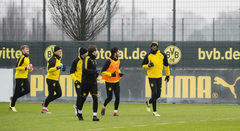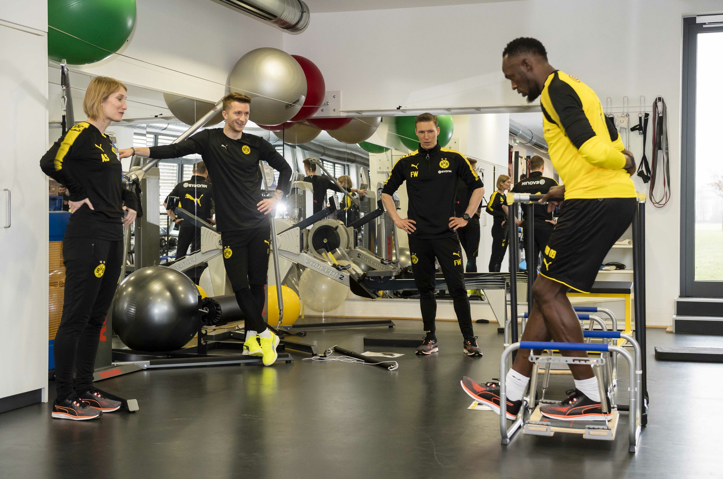 Bajo el entrenamiento y los ojos de la experiencia de los entrenadores del Borussia Dortmund, el hombre más rápido del mundo fue parte de una sesión de entrenamiento donde probó el «Footbonaut», la famosa máquina de entrenamiento de BVB. El viernes entrenó en la cancha con el equipo, acompañado de fans que se presentaron para ver al invitado de honor. Más tarde recibió asesoría de técnica por parte de los coaches.