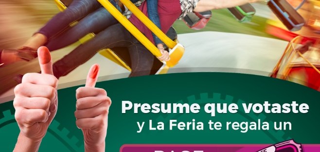 La Feria de Chapultepec, el parque más icónico de la Ciudad de México, otorga un PASE MÁGICO a todas las personas que muestren su dedo pulgar marcado con la tinta indeleble que acredita que ejercieron su participación en las elecciones federales del domingo 1° de julio, promoción válida sólo en taquilla y en este día.