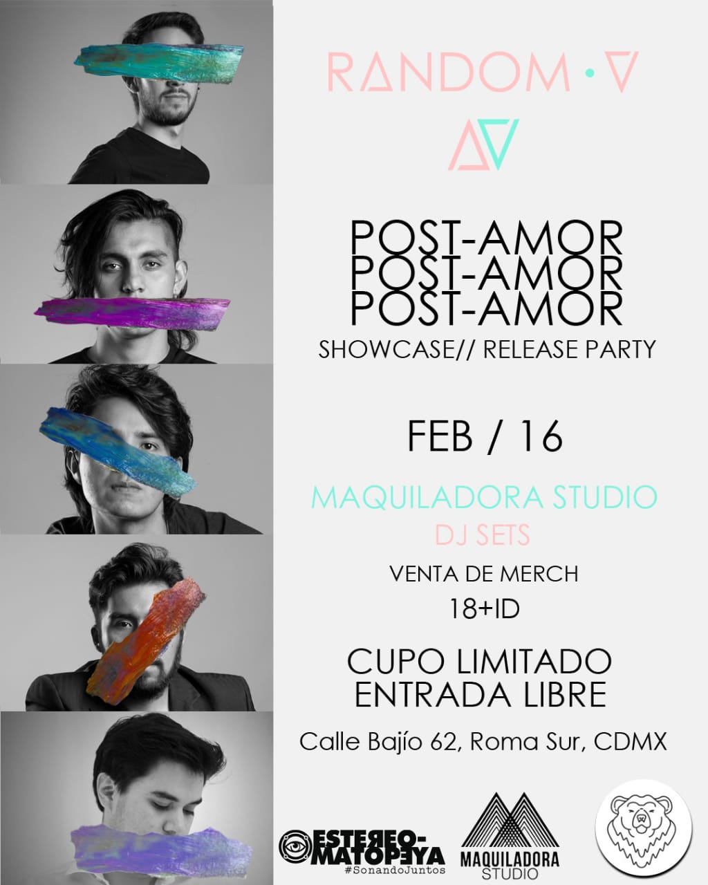 El quinteto realizará un release party con showcase incluido el próximo 16 de febrero en Maquiladora Studio (Bajío 62, colonia Roma). La entrada será libre pero con cupo limitado. Y ahí mismo será la presentación del video de Post-Amor.