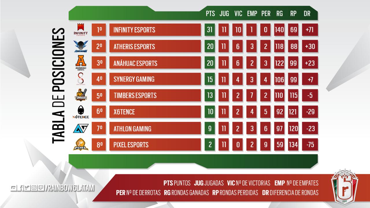 Han transcurrido once jornadas del Campeonato Mexicano de Rainbow Six y las posiciones para la fase de playoffs comienzan a cerrarse. Los equipos siguen mostrando madurez a la hora de encarar las partidas y lucen más preparados. Las ocho organizaciones participantes de la contienda demostraron mucho trabajo y nos dejaron encuentros dignos de una fase final.