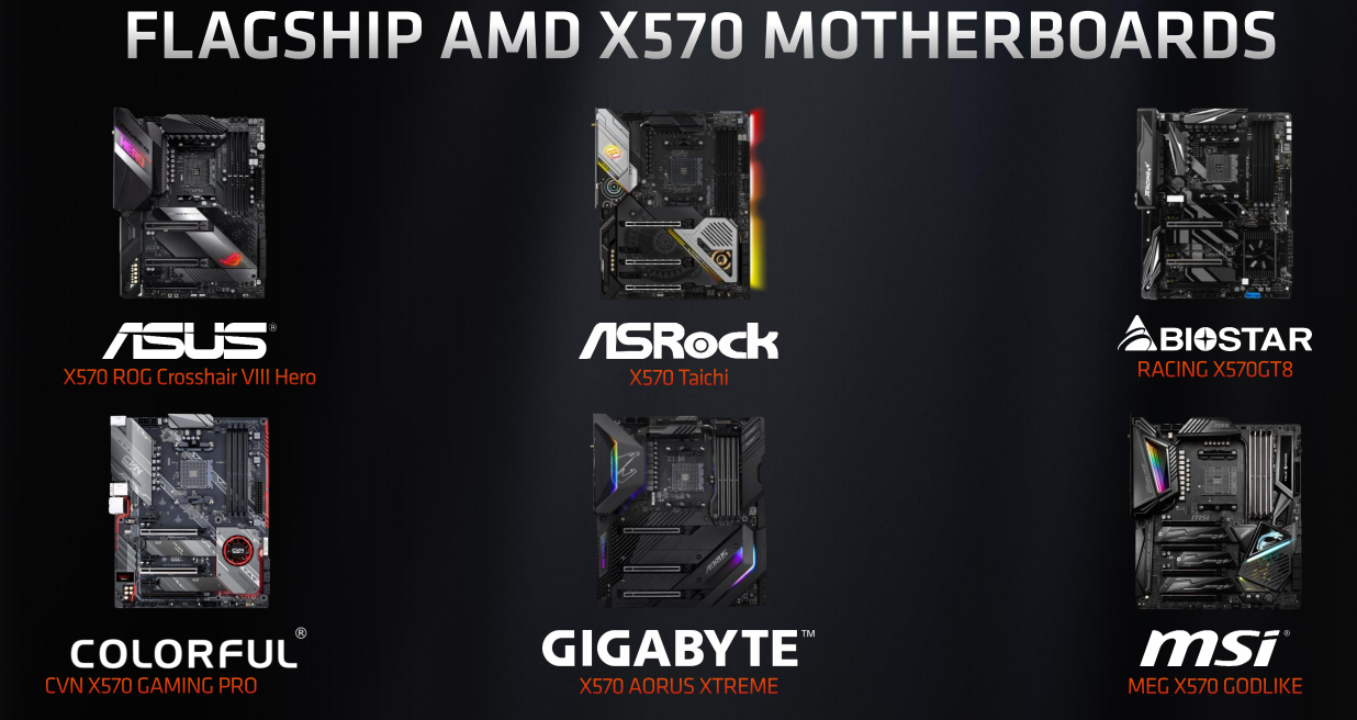 Los procesadores de escritorio AMD Ryzen de tercera generación serán compatibles con todos los principales fabricantes de placas base. Con más de 100 placas madre AM4 actualmente en el mercado, nuestros socios presentarán más de 50 modelos adicionales con el nuevo conjunto de chips AMD X570, la primera plataforma de PC para el consumidor del mundo con soporte para dispositivos PCIe 4.0.