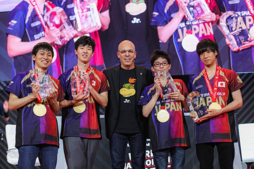 El equipo de Japón salió victorioso en el Super Smash Bros. Ultimate World Championship 2019 3v3 al derrotar a otros tres equipos en su camino hacia la cima. Conformado por Konbu, Zackray, Kuro y su suplente Akasa, el Equipo de Japón derrotó al Equipo Europa 3-1 en el último partido de los cinco mejores. El presidente de Nintendo of America, Doug Bowser, presentó al Equipo Japón sus trofeos y medallas de campeonato.