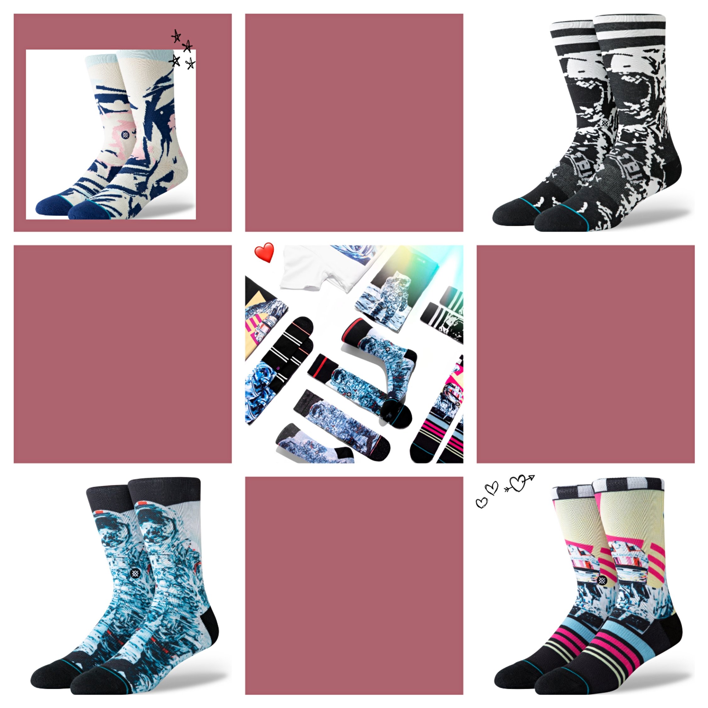 Entra en el mundo de Michael Kagan, un artista abstracto que juega con elementos de velocidad, belleza y caos mientras se correlacionan con lo desconocido. Su colaboración con Stance explora aún más esta mentalidad de Space Race, ya que presta sus imágenes icónicas de heroicos astronautas y corredores de Fórmula Uno a nuestros calcetines