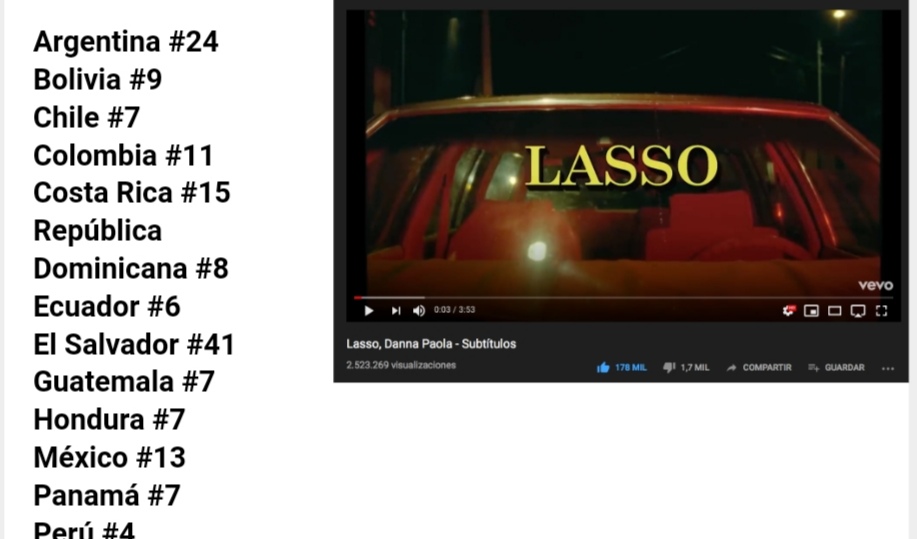 «Subtítulos», se posicionó dentro de los primeros lugares de Trendings Youtube en más de 12 países el día de su lanzamiento.