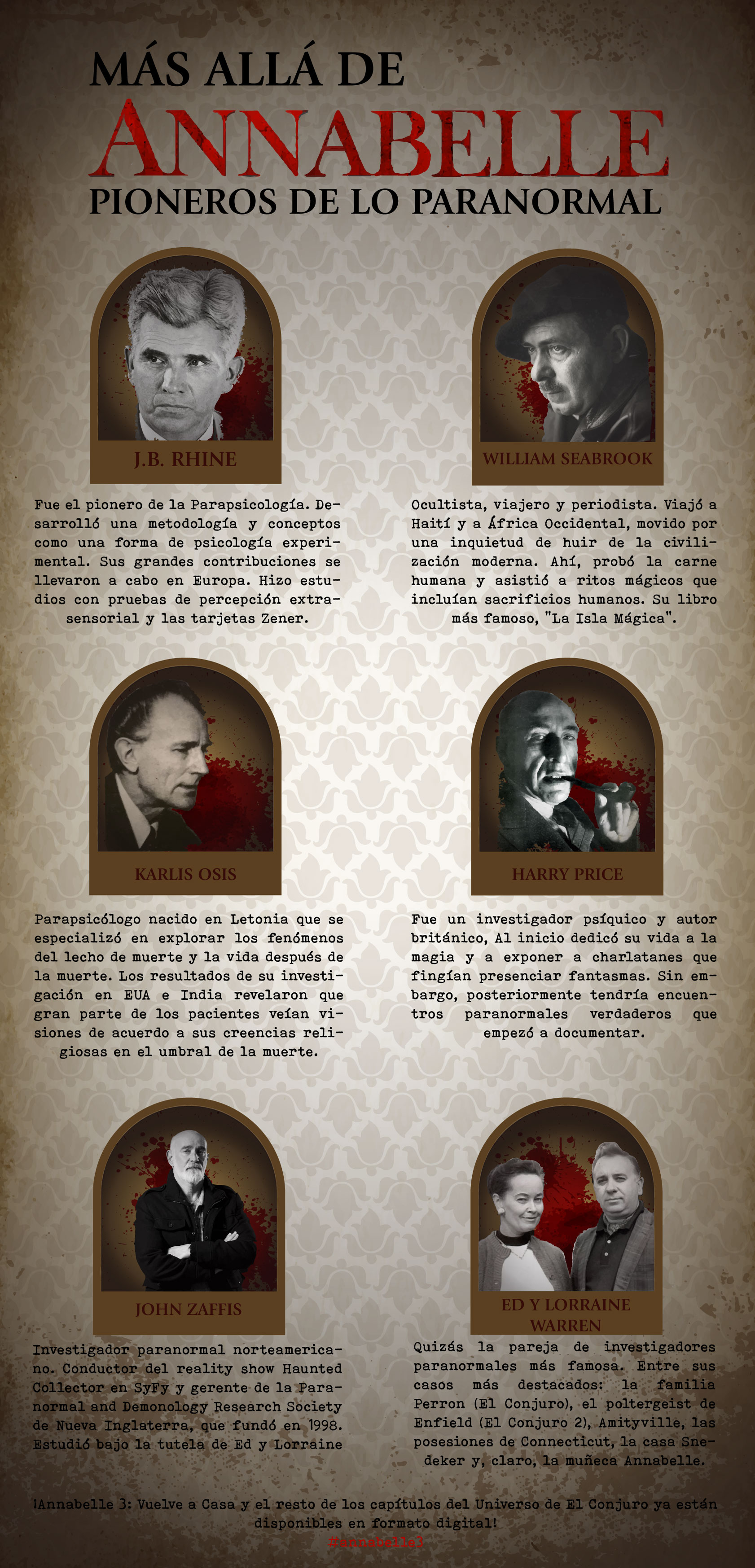 Con motivo del lanzamiento en formato digital de Annabelle 3: Vuelve a Casa, el tercer capítulo de la saga de la muñeca más famosa del cine, celebramos a los pioneros de lo paranormal, que han cambiado la forma de ver el mundo gracias a sus aportaciones en la parapsicología, los ritos humanos y las sesiones espiritistas, por mencionar algunos ejemplos: