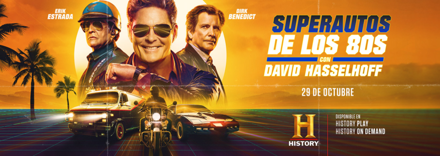 HISTORY lleva a la audiencia de latinoamericana a dar una vuelta en automóvil en su especial titulado “David Hasselhoff presenta SUPER AUTOS DE LOS 80S”, este martes 29 de octubre a las 21:00 horas México.