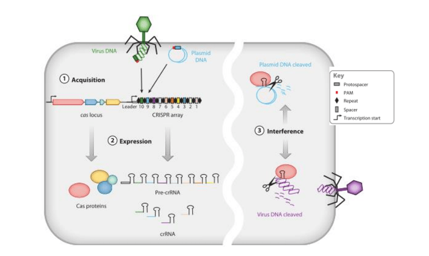 Las herramientas de edición de genes son herramientas que las bacterias usan para combatir virus. Este conjunto de herramientas fue descubierto por científicos en bacterias y tiene una historia de miles de millones de años.