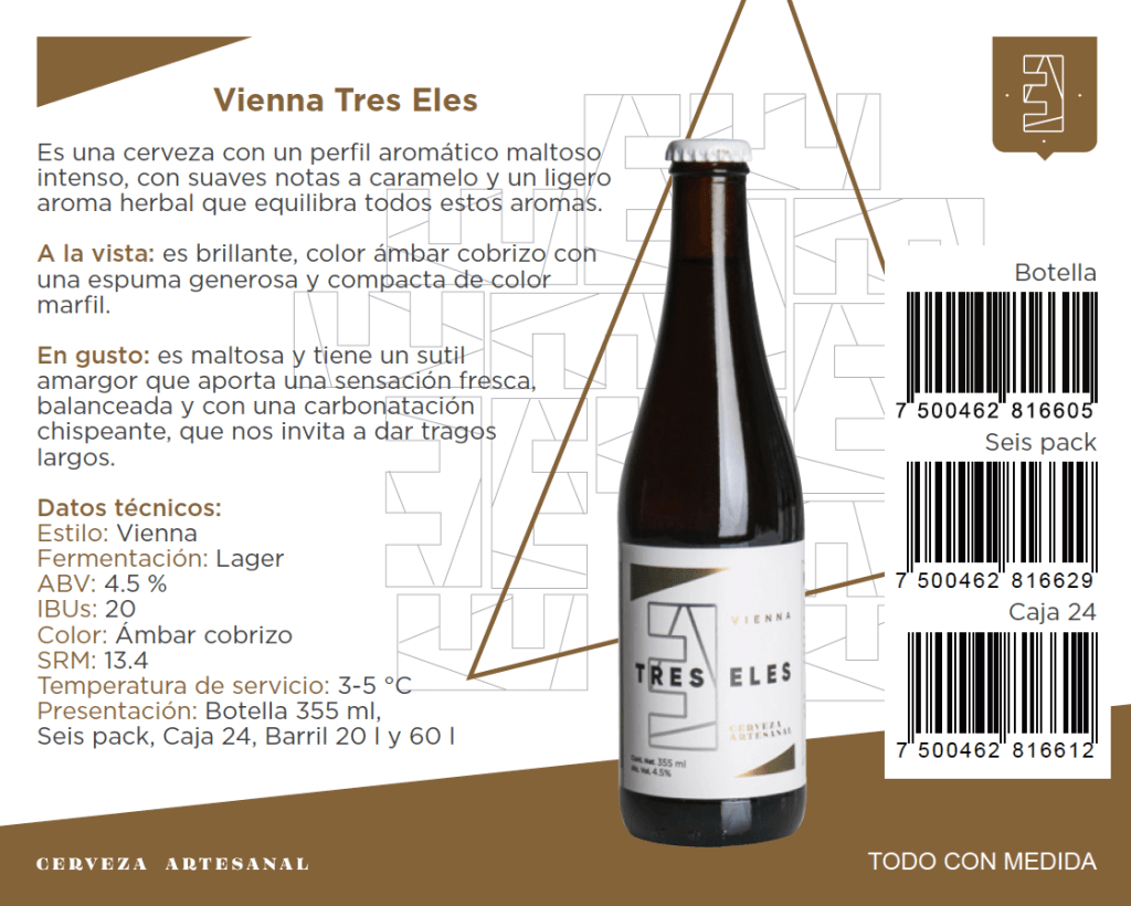 Nacida en la ciudad de México, esta casa cervecera propone dos de sus más exitosos estilos para disfrutar en el hogar: la Pilsner Tres Eles (4.2% Alc. Vol.), de gusto ligero, sedoso y un poco herbal; y la Vienna Tres Eles (4.5% Alc. Vol.), fresca, maltosa y un poco amarga, para paladares más educados.