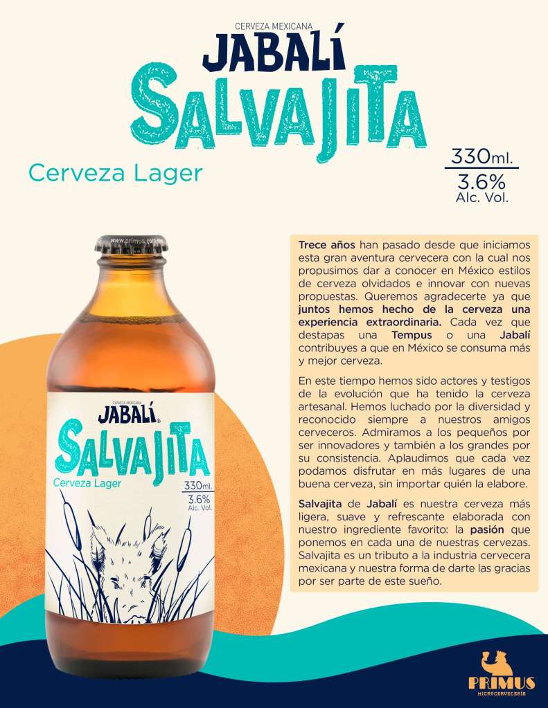 Disfruta las deliciosas creaciones de su línea Jabalí, las cuales buscan romper con la idea de que la cerveza clara es “ligera” y la oscura “fuerte”. Descubre la lager Salvajita (3.6% Alc. Vol.) o la Bock (6.3% Alc. Vol.) y Hellesbock, (8.1% Alc. Vol).