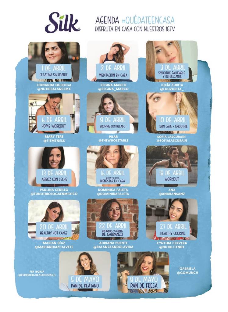 Estas actividades estarán en vivo desde la mañana hasta la tarde, en la cuenta de Instagram de Silk, @silkmx, durante abril y mayo, por lo que te invitamos a que estés pendiente y no te pierdas ninguno de estos planes que con toda seguridad te ayudarán a sentirte mejor.