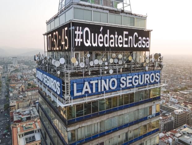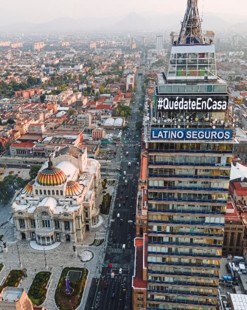 Como parte de las diversas campañas para crear conciencia sobre quedarse en casa ante la emergencia sanitaria que aqueja al país, el fotógrafo profesional David Muñiz suma su talento desde su perspectiva artística, a través de la serie de fotografías #QuédateEnCasa, realizadas con dron en la periferia de la Torre Latinoamericana, en la Ciudad de México.