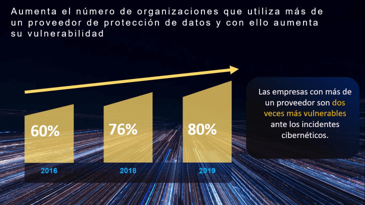 Cuando las empresas pierden información, pierden confiabilidad por parte de sus clientes y los costos de recuperación pueden aumentar exponencialmente causando en algunas ocasiones que la desaparición de las mismas. Debido a esta situación diversas organizaciones año con año, han tenido que adoptar nuevas tecnologías, como el 5G, el aprendizaje automático, la utilización de aplicaciones nativas en la nube y la automatización de algunas areas, llevándolas a tener la necesidad de estrategias de protección de datos sostenibles y ágiles, que puedan escalar en un mundo de nubes múltiples y múltiples plataformas, en éste caso la propuesta de Dell Technologies es: una consola que proporcione un ambiente seguro y confiable; en donde se tenga la certeza de recuperar datos, retener los activos, tener una protección de datos múltiples y la utilización multicloud, características que forman parte del Programa de lealtad Future-Proof de Dell EMC.
