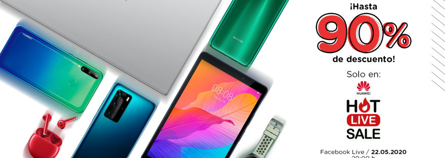 Te invitamos a conectarte al Huawei Hot Live Sale, para que conozcas todas las promociones exclusivas que se presentarán dentro del mismo, para aprovechar precios con hasta el 90% de descuento, el próximo viernes 22 de mayo, en punto de las 8 de la noche, en el siguiente enlace: