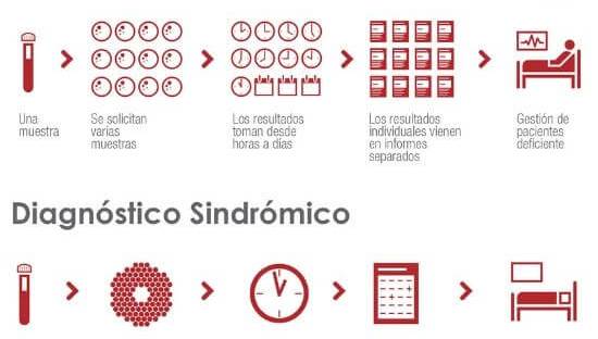 En contraste, el diagnóstico molecular sindrómico de bioMérieux, se lleva a cabo a partir de una muestra a la que se le realiza una sola prueba completa, arrojando varios resultados en aproximadamente una hora, y detecta simultáneamente múltiples virus, bacterias, parásitos y hongos responsables de diversas infecciones. Esta prueba puede realizarse sin necesidad de contar con un laboratorio de biología molecular y puede ser procesada por cualquier profesional de la salud.