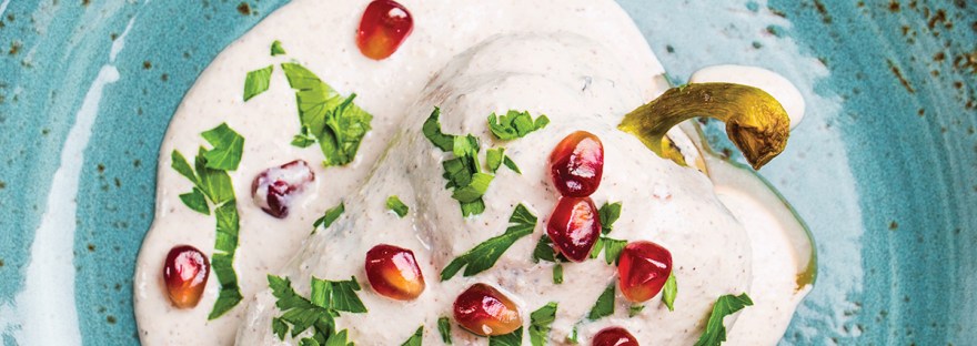Cubiertos por una original salsa elaborada con nueces de castilla frescas, rojos granos de granada y hojas de perejil, los chiles poblanos convertidos en Chiles en Nogada con su preparación, se han convertido en el estandarte de las Fiestas Patrias en México; que como la bandera, lucen como ningún otro platillo, los colores nacionales. Son uno de los platillos típicos de la gastronomía del estado de Puebla y han sido llamados el «platillo mexicano por excelencia» por algunos autores.