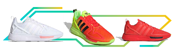 La parte frontal y central de los nuevos ZX muestran detalles técnicos únicos –malla técnica con revestimientos soldados y una estructura sin lengüeta que garantiza un ajuste cómodo en el tobillo que los hace lucir audaces y modernos. Un diseño irregular que incorpora tecnología que crea una apariencia futurista.