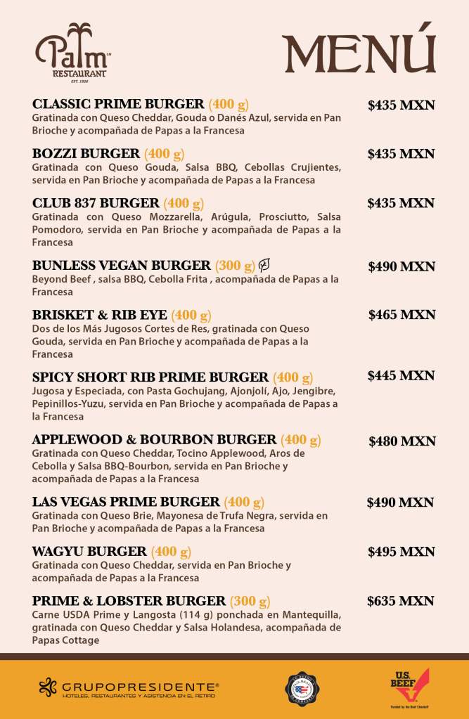 Como cada año, la temporada de hamburguesas llega al restaurante The Palm durante todo el mes de octubre y, en el menú creado por el Chef José Luis Ronquillo, podrás encontrar 10 diferentes estilos de hamburguesas hechas con ingredientes de temporada, jugosa carne USDA Prime y Wagyu, pan brioche horneado en casa y papas a la francesa o cottage, además de contar con una opción vegana.