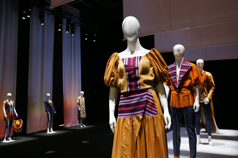De esta manera Suilma Sánchez Tuunik combina una cosmovisión indígena mexicana en vivos colores con el uso de materiales como la seda, el algodón, la piel, el lino y la lana tanto en prendas para dama como para caballero.