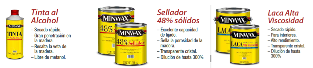 Una vez preparada la superficie aplica Tinta al alcohol para darle color a la madera, deja secar y aplica Sellador 48% sólidos para tener una excelente adherencia y disminuir la porosidad de la superficie, líjalo suavemente y finalmente aplica Laca alta viscosidad en acabado mate o brillante, te recomendamos aplicar los productos con brocha de camello. Y ¡listo!, tendrás un acabado profesional en tu mueble renovado.