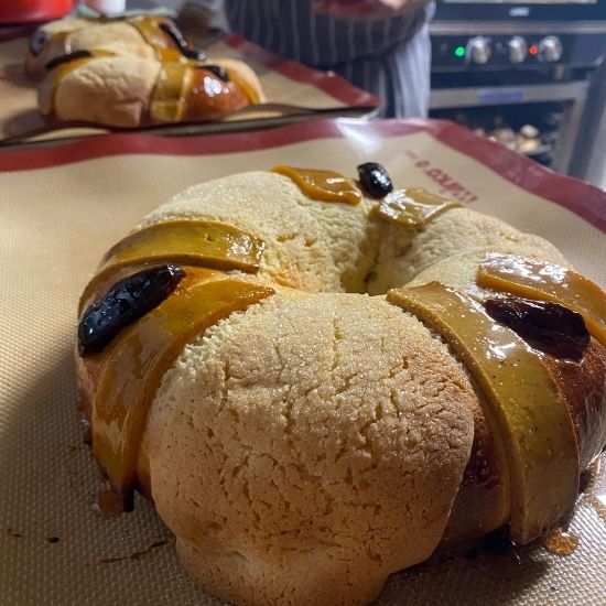 Migrante elaboró la tradicional Rosca de Reyes con masa madre joven y la cerveza de Yeccan llamada “Segunda Ola”, estilo Tart Ale de frambuesa y jamaica, la cual se barniza con una reducción de la misma cerveza.