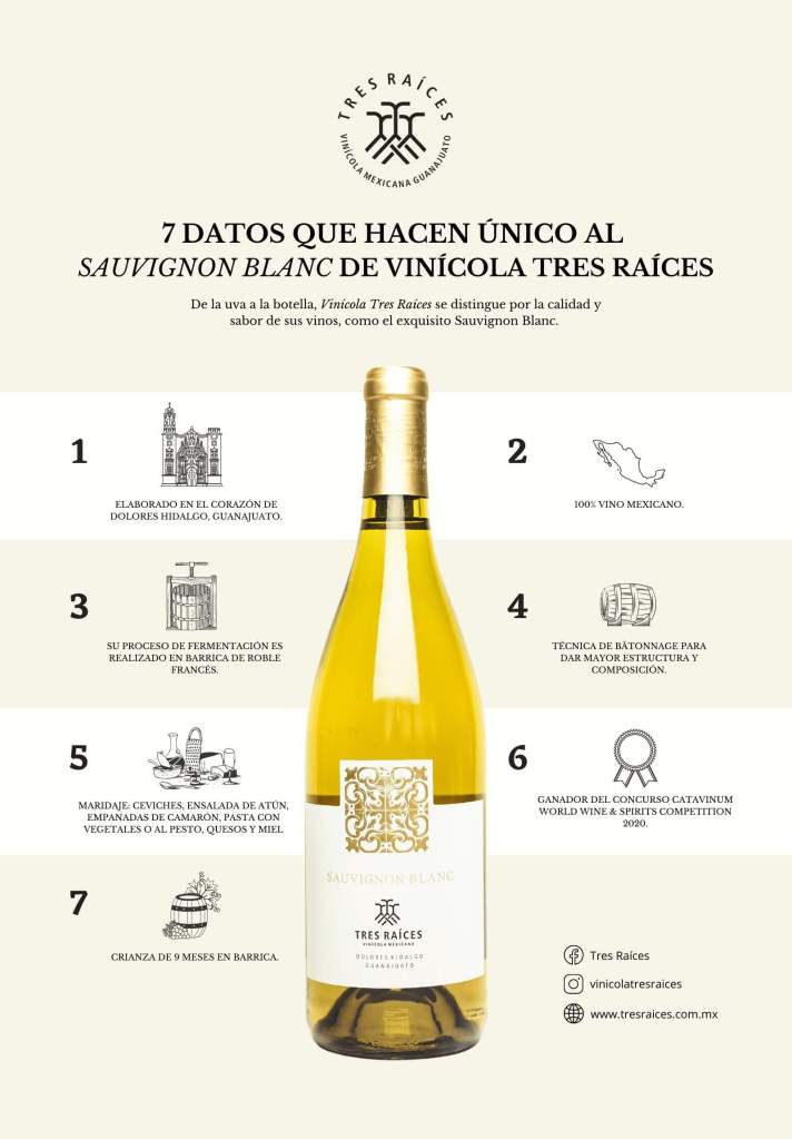 De la uva a la botella, Vinícola Tres Raíces se distingue por el sabor de sus vinos, como el Sauvignon Blanc.