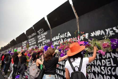 Y muy pronto más y más mujeres se unieron y se reunieron en el Zócalo para colocar, letreros, fotos, flores y más cosas para recordar a las que ya no están aquí con nosotros y para apoderarse de algo que estaba destinado a dejarnos fuera al principio.