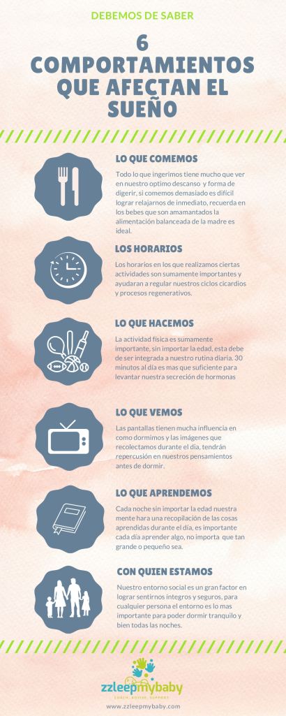 La especialista en sueño y Fundadora de Zzleep My Baby, Liliana Amaro ha enlistado en una infografía algunas de las conductas más comunes que se convierten en hábitos y afectan el sueño y su ciclo.