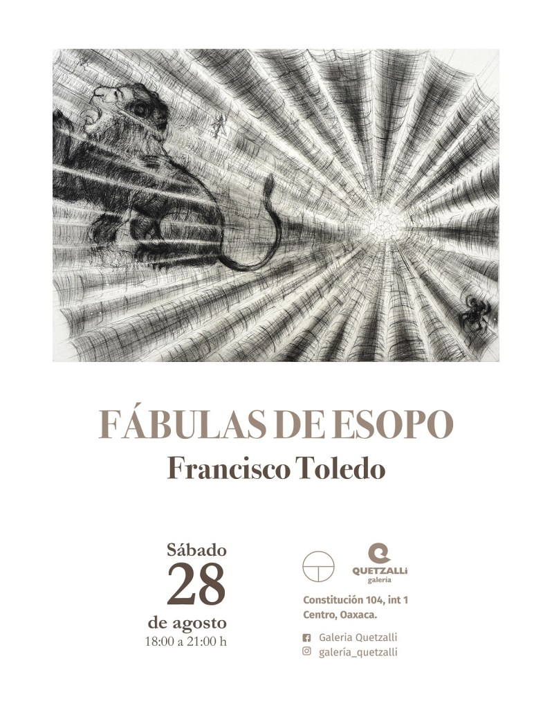 Si nos quedásemos únicamente con el relato de las fábulas de Esopo, sin las notas que suponen una moraleja, sin ese conjunto de palabras que muchos afirman fueron añadidos posteriores, probablemente no perderíamos la sabiduría que nos transmiten. A Francisco Toledo le interesa una lectura de Esopo sin que necesariamente suscriban una moral determinada. Para Toledo es más acertado decir que con cada pieza que concibe es capaz de inventar una naturaleza, un modo propio de ser. Algo que hemos visto continuamente en su trabajo es no sólo el representar ciertos especímenes sino el de inventar otros: insectos, animales e incluso plantas que jamás hemos divisado aparecen en su obra como si fuera ese su escenario natural.