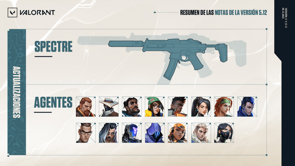Ten presente que al menos 15 agentes tendrán cambios relevantes y el arma Spectre tendrá su daño dividido en 3 rangos de distancia, dado el factor de que tenía mucha fuerza en momentos determinantes y acapara la atención.